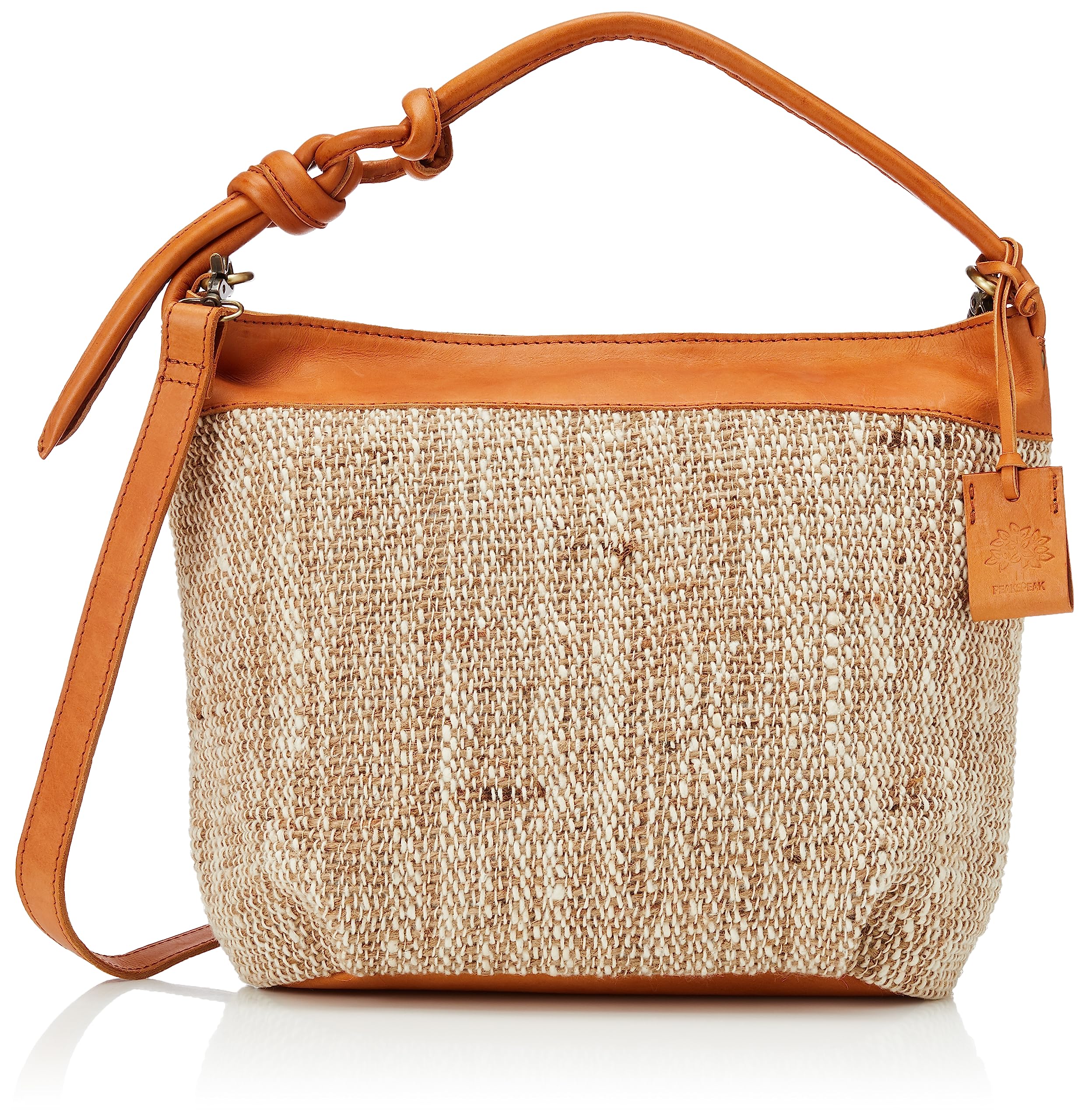 [ピークスピーク] 綿麻ショルダー 綿麻×牛革コンビ2WAYショルダー レディース キャメル