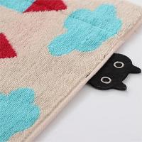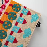 おうちと花壇をモチーフにした幾何柄がお部屋を可愛く彩ります。ひょっこり顔出しMEMEのアップリケがワンポイント。季節を問わずMEMEと一緒にお過ごしください。