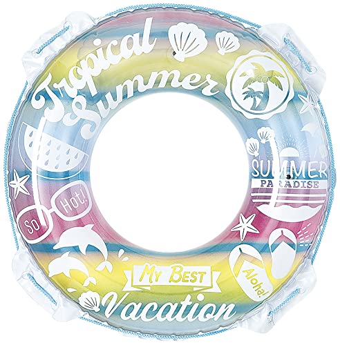 膨らんだ状態の浮輪の内周が約105~110センチの浮輪です。対象年齢12~17歳くらいのティーンに最適。かんたん空気栓装着商品。ロープ付