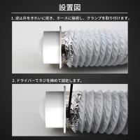 この逆風防止ダンパーの外径は約95mmで、内径100mm以上のPVCチューブ或いはアルミ箔ホースを接続でき、取り付けが便利です。