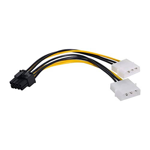 この電源ケーブルの一端にはPCI-E 8ピンプラグがあり、PCI Expressビデオカードに接続でき、他端は電源の2つの別々のMolex 4ピンコネクタに接続できる(2つの異なる回線に接続するのが望ましい)。