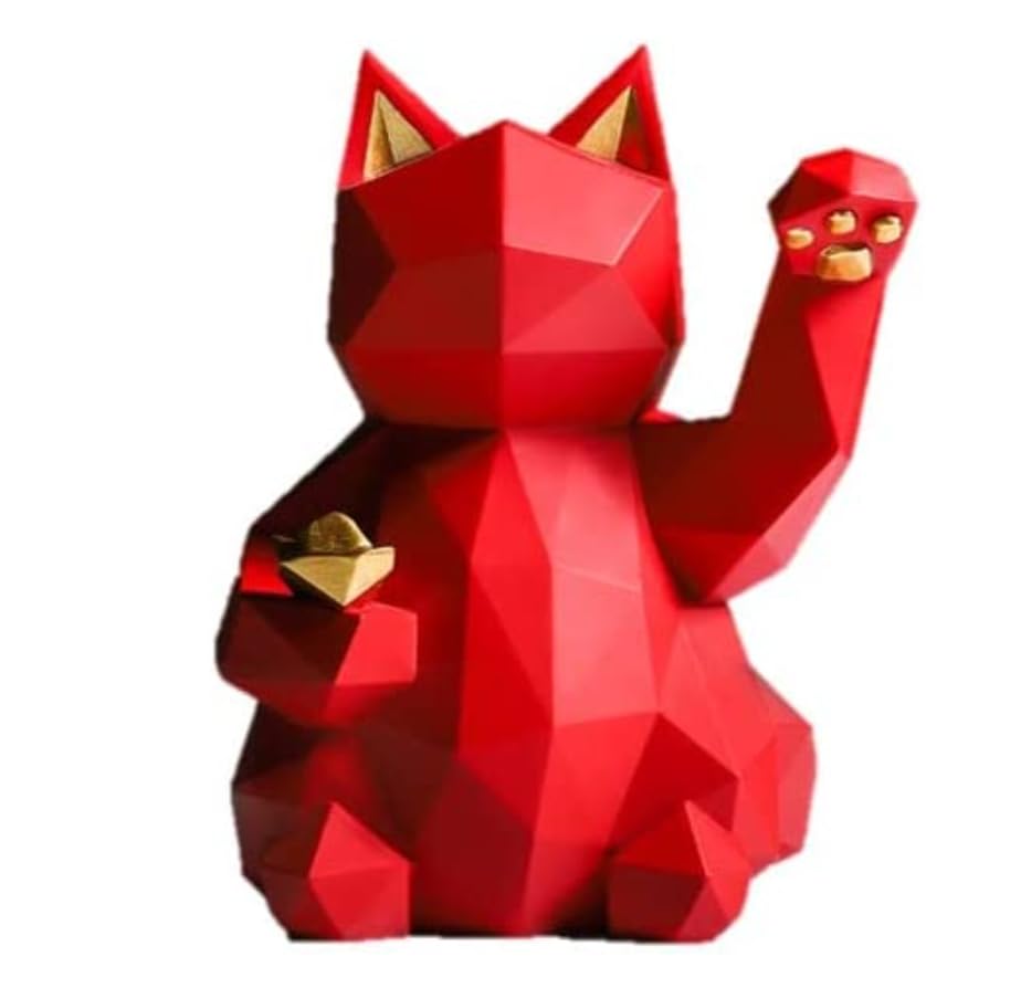 招き猫 置物 北欧 雑貨 おしゃれ 風水 カクカク モダン まねきねこ インテリア 招福 アンティーク (レッド)