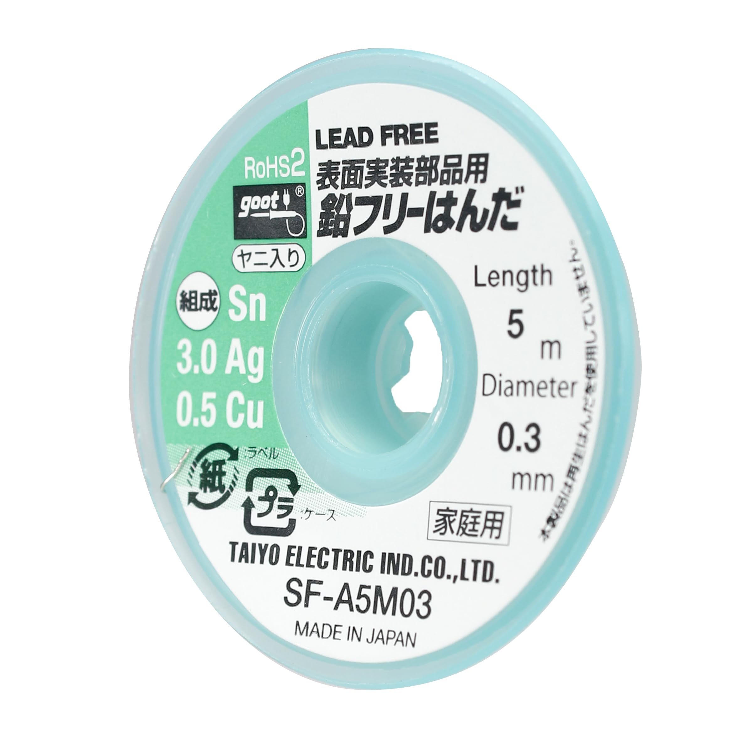 太洋電機産業(goot) 鉛フリーはんだ Φ0.3mm スズ96.5%/銀3.0%/銅0.5% 5m巻 ヤニ入り SF-A5M03