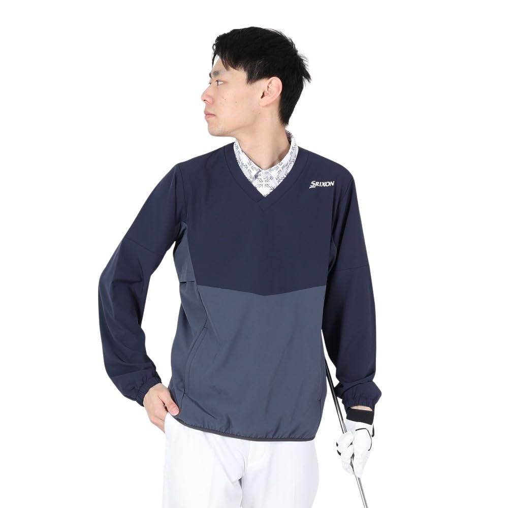 [スリクソン] ウィンドブレーカー Vネック MOTION 3D 小雨対応 はっ水 ストレッチ ゴルフ RGMXJK01 メンズ NV00(ネイビー)