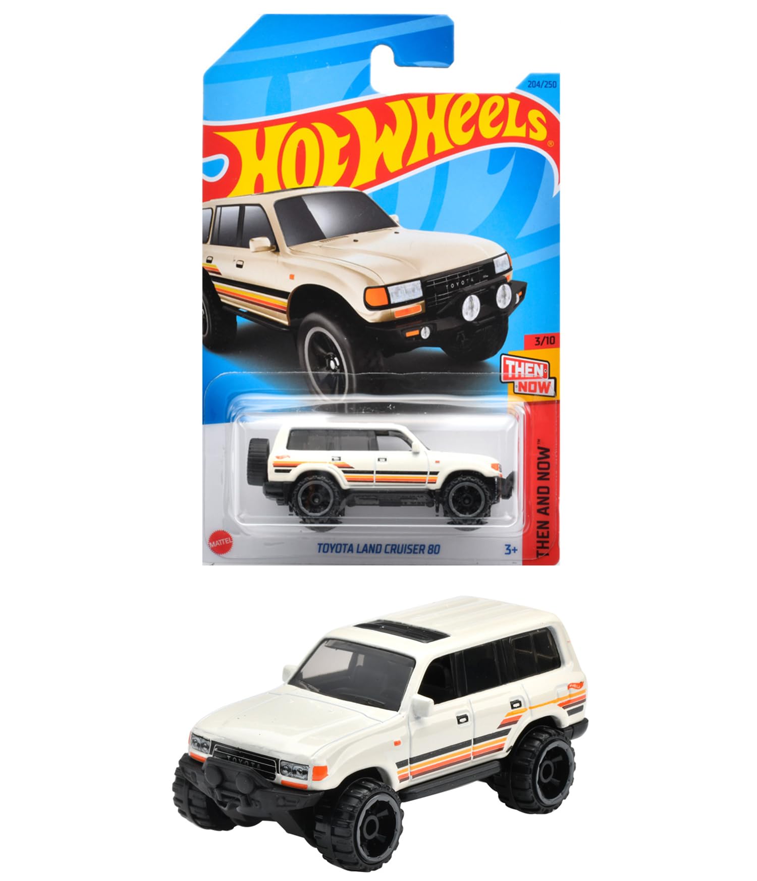 【内容】1950年代初頭に軍用車として開発されたジープ型4輪駆動車を原点とするランドクルーザーシリーズ。当初は悪路を走るための高機動車として好評を博していたが、次第に実用性や快適性なども求められるようになったことから、ステーションワゴンとジープをドッキングした、今で言うSUV版が派生することになった。ホットウィールがモチーフにしたのは1989年に発売された80系で、高い実用性に“高級感”をも加えたことで、世界中で人気を博した。ホットウィールでは今なお人気の80系ランドクルーザーに、大径タイヤなどでオフロード走行用のモディファイを加えているのもポイント!