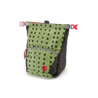 マジックテープの開口部(ロールダウンしてバックル止めという)床置きタイプチョークバッグのスタンダードとして長年世界中の多くのクライマーに愛用されている信頼のチョークバッグです。フロントには小物を入れることのできるジッパー付きポケットも装備。