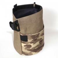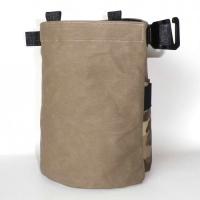 ベージュの迷彩柄8号帆布にラミネート加工したものとパラフィン加工(ロウ引き加工)の9号倉敷帆布を使用しています。デニム同様経年変化を楽しめる素材です。