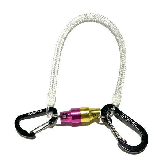 pamoカラーのマグネットストラップにpamoロゴ入りカラビナ付
