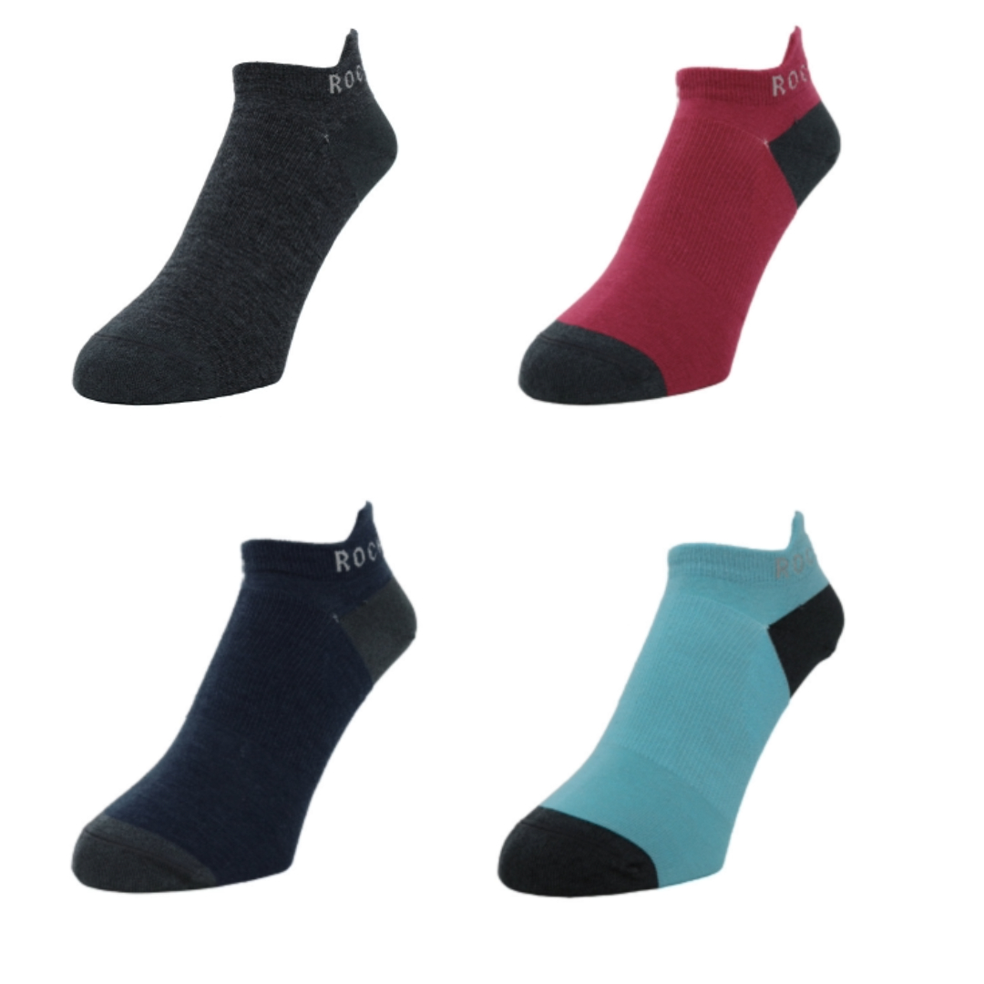 つま先と踵部分に滑りにくい機能性マイクロファイバー・東レ【カラフルスプリット】を採用し、土踏まずから甲周りを帯状に編み方を変えフィット感を高め、履き口にはつまみ引っ張れるように高さを出し、アキレス腱へのシューズのあたりを和らげています。