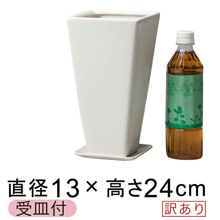 植木鉢 おしゃれ 陶器鉢 鉢カバー 4.5号 受皿付 角深型 白