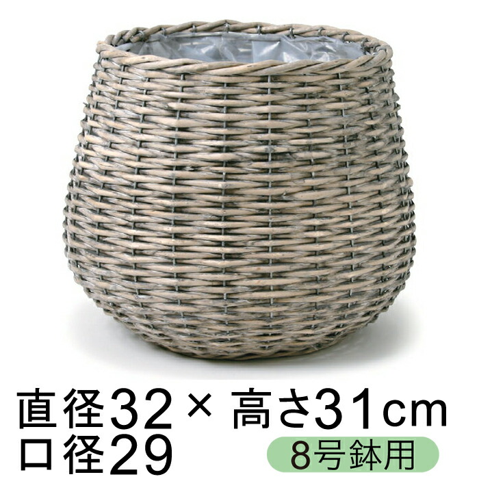 鉢カバー 自然素材 柳 グレー ウォッシュ ぽっちゃり 8号鉢用 直径26cm以下の鉢に対応 個体差あり