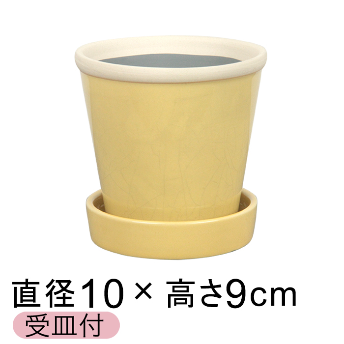 おしゃれ 植木鉢 陶器 鉢 グロッシー POT 3号 10cm J ミモザ つや有 皿付 貫入 室内 屋内