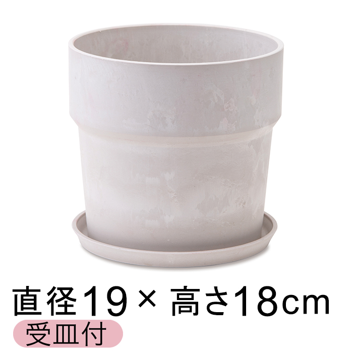 おしゃれ 植木鉢 ウッドストーンプラポット 19.5cm 6号 受皿付 ミルク アートストーン