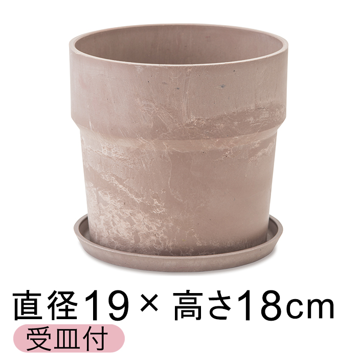 おしゃれ 植木鉢 ウッドストーンプラポット 19.5cm 6号 受皿付 シナモン アートストーン