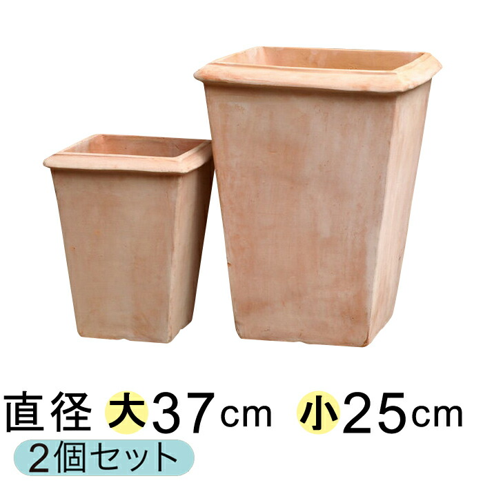 シンプル 角 深型 素焼き鉢 大小2個セット テラコッタ 鉢 植木鉢 おしゃれ 送料無料