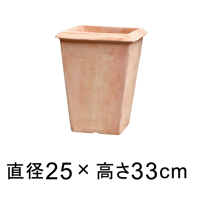 シンプル 角 深型 素焼き鉢 小 25cm 9リットル テラコッタ 鉢 おしゃれ 植木鉢