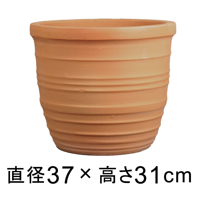 横ライン 素焼き鉢 テラコッタ 鉢 大 37cm 19リットル 植木鉢 おしゃれ