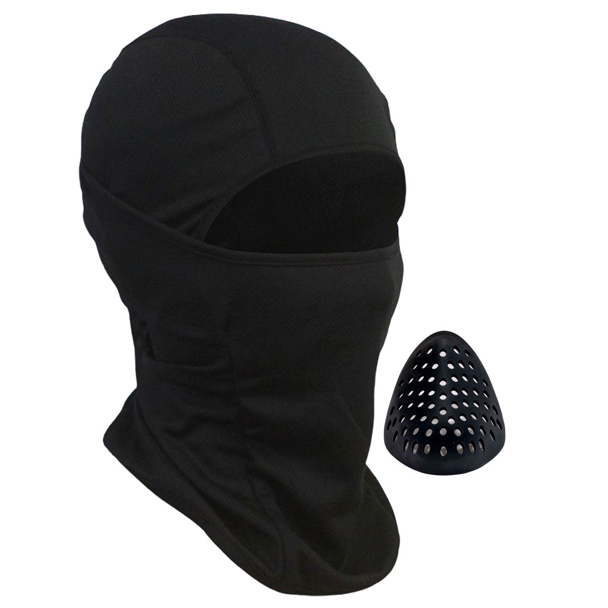 【 呼吸が苦しくない 】シェルマスクは大きめの穴が開いており、バラクラバと一緒に着用することで息もラクラクです。