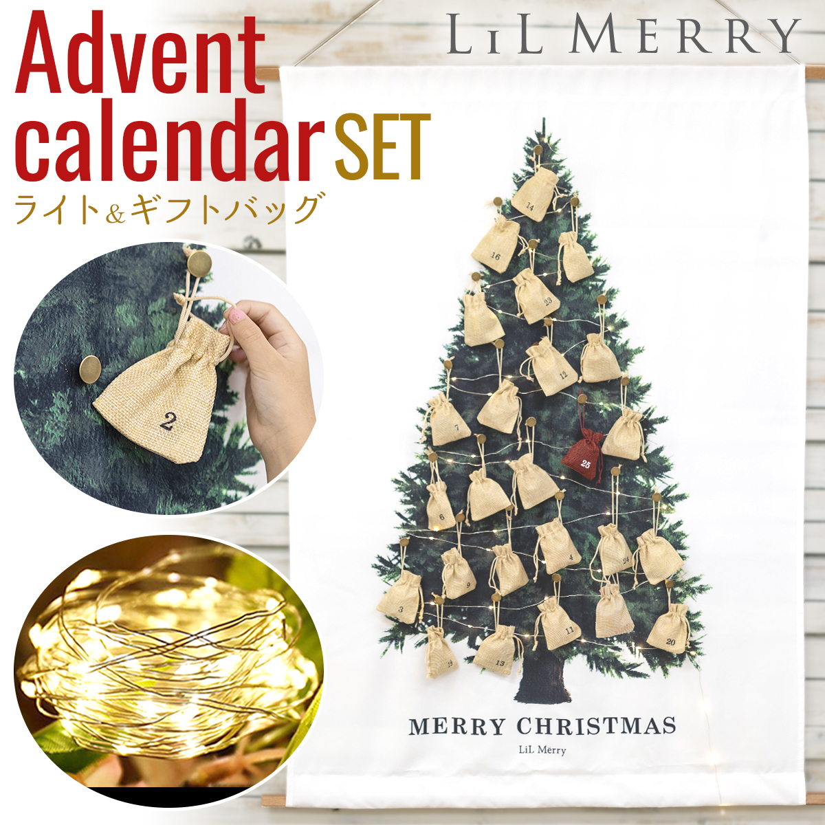 【小袋付き】クリスマス アドベンドカレンダー アドベンドツリー クリスマスツリー タペストリー 壁掛け 北欧 大判 パネル 飾り 装飾 オーナメント 布 ツリー タペスリー 袋 セット