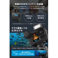 撮影は長く、充電は短く。1900mAhの大容量Enduroバッテリーが、酷暑から極寒まで、あらゆる環境での長時間撮影を可能にします。4K30または5.3K30なら1.5時間、1080p30なら2.5時間以上連続撮影できます。(気温25°C、風速0.6m/秒で測定した撮影時間。広角デジタルレンズを装着、ワイヤレス接続、Bluetooth、HyperSmoothオン、前方と後方のLCDスクリーンオン (1分のスクリーンセーバー)、ボイスコントロールとGPSはオフ。)