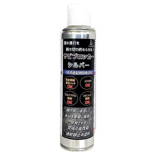 送料無料/サビブロッカー シルバー エアゾール 260ml/油性1液浸透型錆固着 高性能速乾型錆止め塗料 防錆 パテ付け 亜鉛メッキ 黒皮鋼板 ステンレス鋼板
