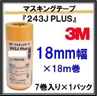 3M マスキングテープ 243J Plus 18mm×18m×7巻 1パック 住友スリーエム