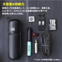 携帯ポンプや交換用チューブ、パンク修理キット、携帯工具、Co2ボンベ、タイヤレバーなどの装備を収納する事ができ