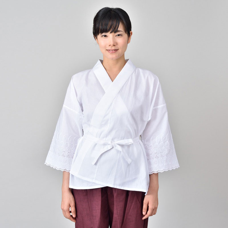 肌に触れる大部分は天然素材の綿で、優しい肌触り。衿と袖は滑りのいいポリエステルで、動きやすく袖通り滑らかです。