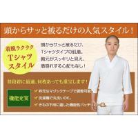 頭からスッポリかぶって着られる着脱簡単なTシャツタイプ。衿元はマジックテープで調整可能です。お手入れも洗濯機で丸洗い可能と、便利尽くし。