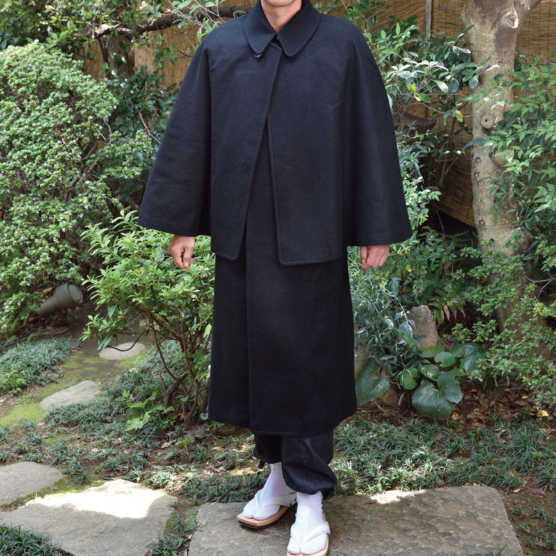 和装に似合うことはもちろんですが、スコットランド発祥のコートですから、洋装と合わせても抜群にサマになります。風にひるがえるクラシックなシルエットは、まさに銀幕の主人公さながら。普通の和装コートではもの足りない、という方にもきっとご満足いただける事でしょう。