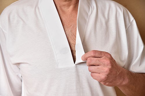 伸縮性・吸収があり、着やすく、衿元がしっかりしているのが特徴。