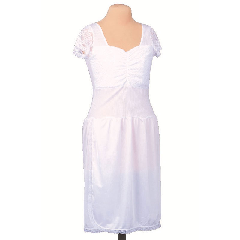 レース使いやフレンチ袖のデザインが、女性らしさを演出し、年代問わずお選びいただけるデザインになっています。