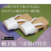 つま掛けが付いた雨の日も安心の桐下駄です。つま掛けは、ゴムで歯に掛けてあるだけなので、簡単に取り外しが出来ます。