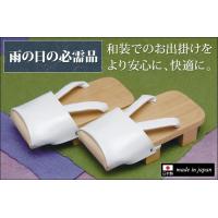 つま掛けが付いた雨の日も安心の桐下駄です。つま掛けは、ゴムで歯に掛けてあるだけなので、簡単に取り外しが出来ます。