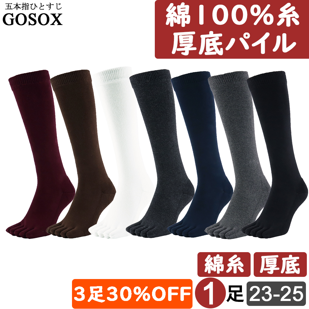 五本指 ソックス 5本指 靴下 レディース ハイソックス ロング 厚手 黒 綿 無地 冷えない