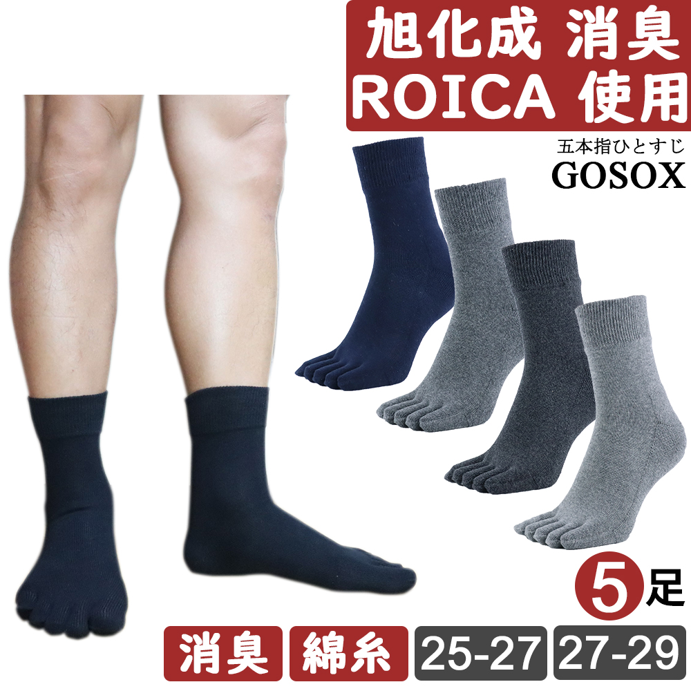 五本指 ソックス 5本指 靴下 メンズ 厚手 黒 ブラック 綿 100 無地 ハーフ丈 消臭 旭化成