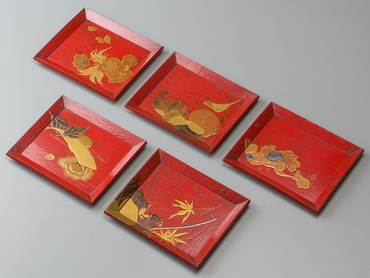 | 商品説明 | | 品名 | 木製漆塗 朱漆蒔絵梨地絵替銘々皿 五客 江戸中期 箱付 | | 寸法 | 縦9.4cm 横11cm 高1cm ※寸法に若干の誤差が生じます。ご承知下さい。 | | 状態 | 良好。 | | 略歴 | | | 備考 | | | 補足 | | | 送料 | ■ゆうパック60サイズ(詳細は以下の〈配送方法〉を参照して下さい) ※形状・性質が異なるものは同梱をお断りさせていただく場合がございます。同梱の場合、サイズ変更により表示される送料の金額を修正させていただく場合がございます。予めご了承いただきますようお願い致します。