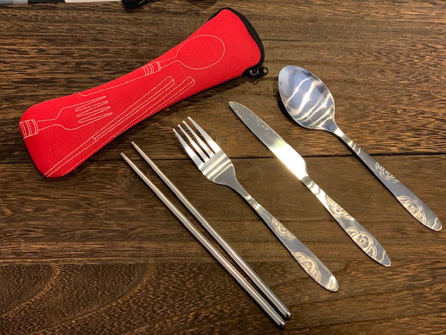 キャンプ 食器。 ナイフ フォーク スプーン 箸の4点セット。全て衛生的なステンレス素材です。