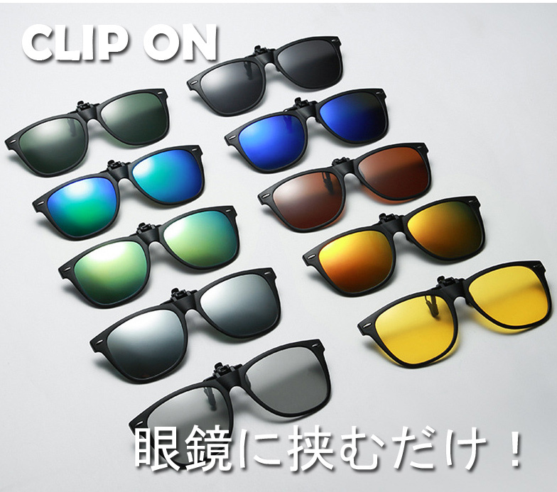 クリップオンサングラス 跳ね上げ式 調光 偏光 夜間 日夜兼用 お洒落