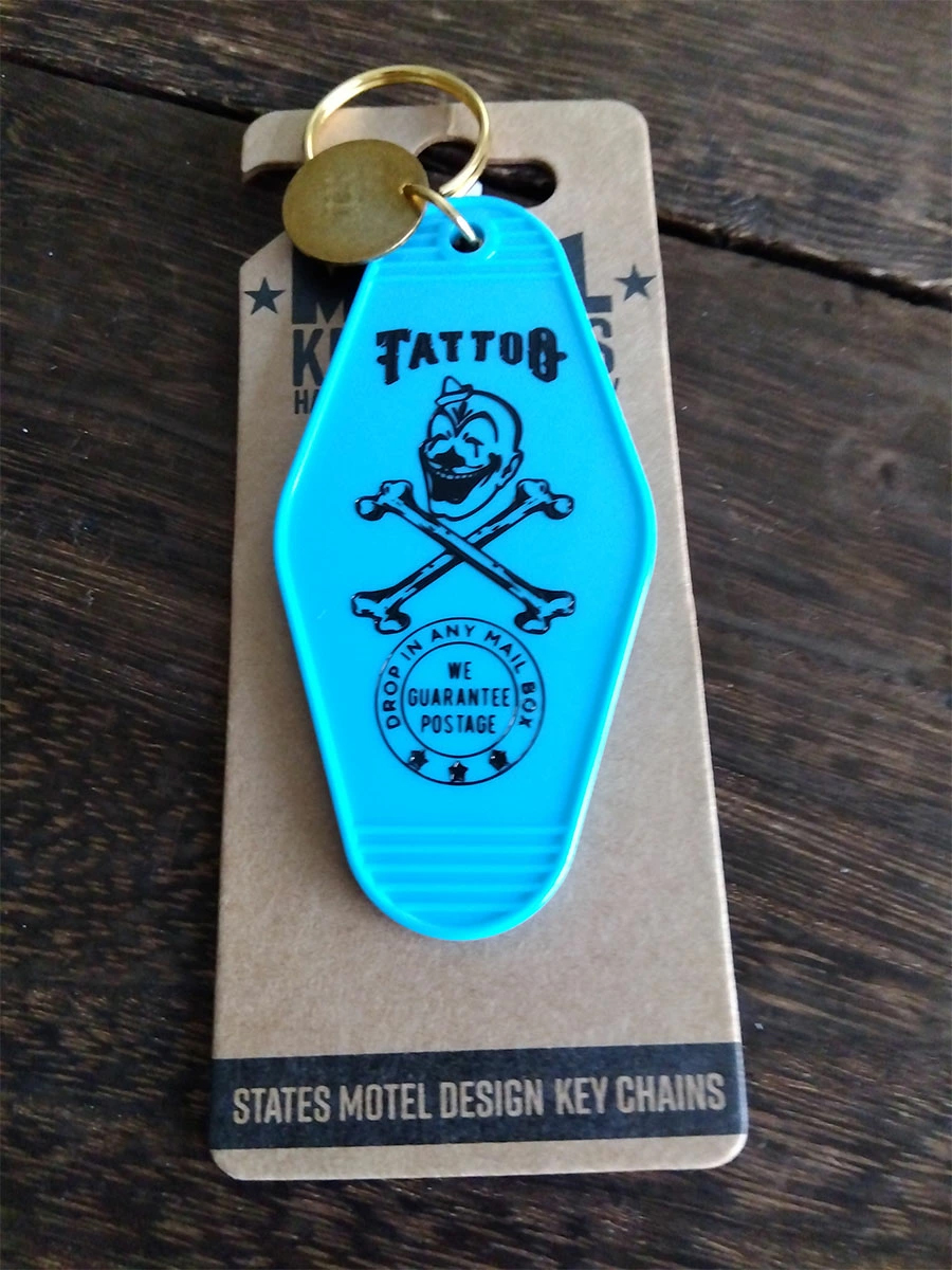 モーテル キーホルダー タトゥー TATTOO TWO FACE バイカー ブラック アメリカン おしゃれ 両面 ホットスタンプ アメ車 ハーレー 自転車