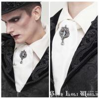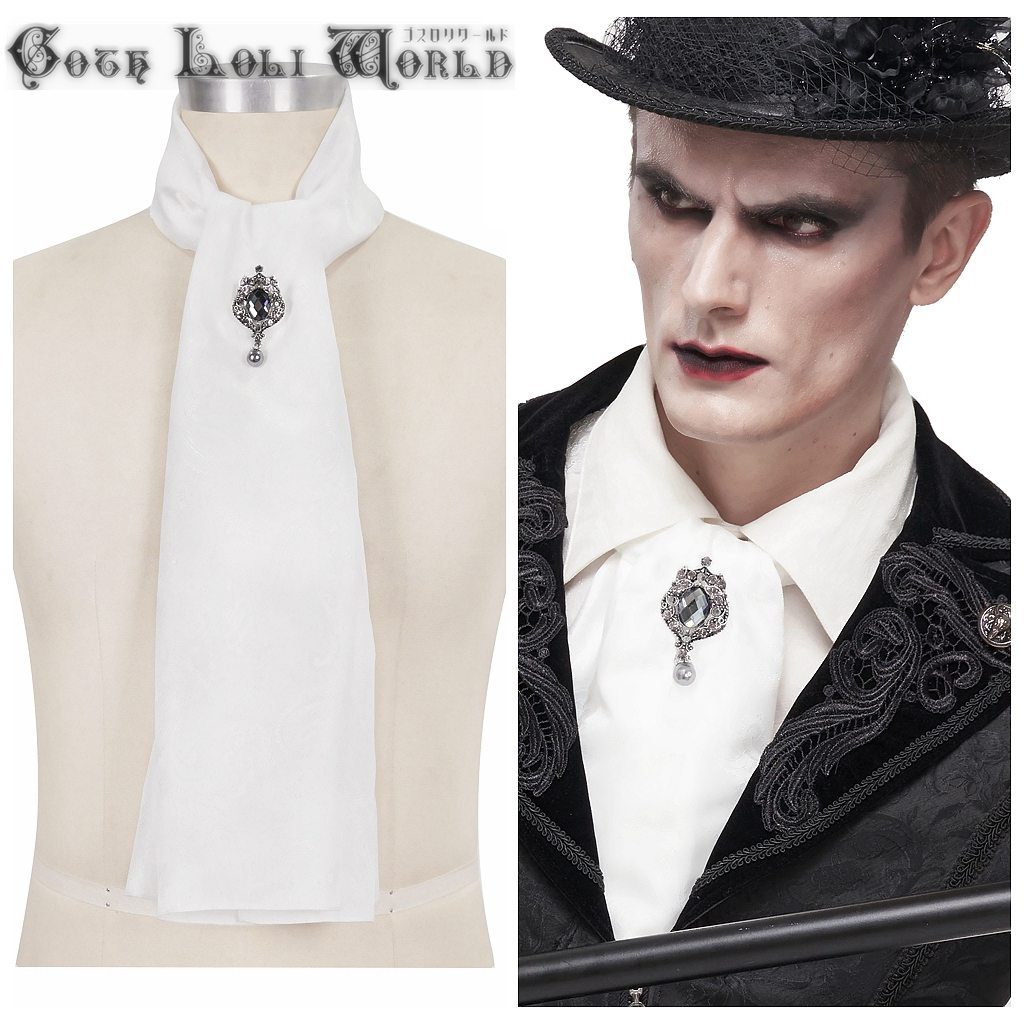 【ゴスロリワールド】Devil ゴスロリ ブローチ付ペイズリー柄 アスコットタイ 白色 最短当日発送 当日発送 品質自信有 サイズ交換可能