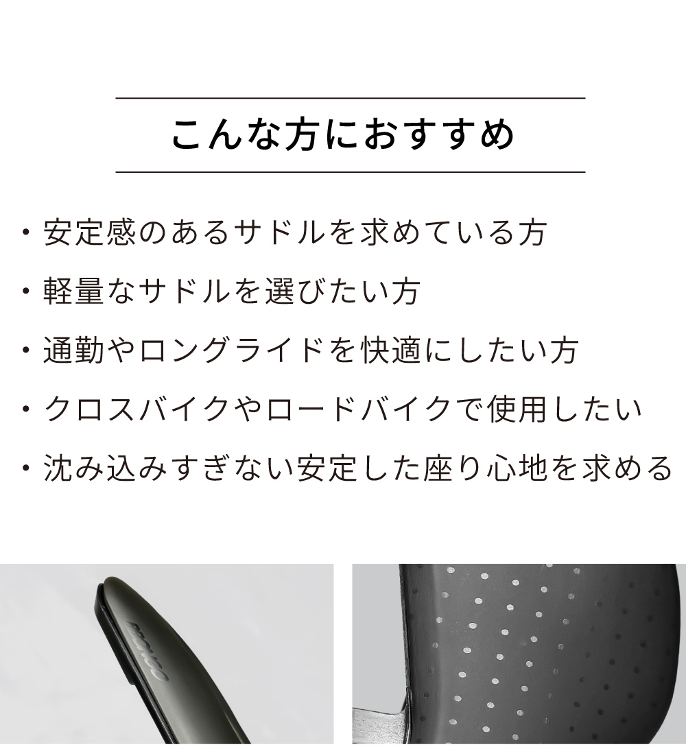 軽量でありながら安定感を求めるロードバイク・クロスバイクユーザーに最適なサドルです。