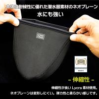 伸縮性が良いLycra素材使用、また本体は耐候性に優れたネオプレーンを使用で変形しにくい。