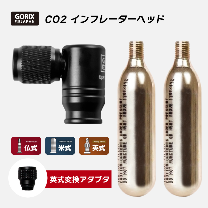 内容:CO2インフレーター(携帯空気入れ)+16gCO2ボンベ2本