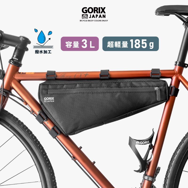 ロードバイクやクロスバイク、マウンテンバイクなどのフレームに取付けできる自転車用フレームバッグ。