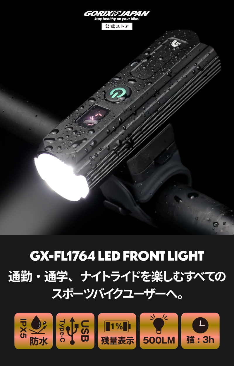 GORIX GX-FL1764 フロントライト「夜間走行の不安を解消」