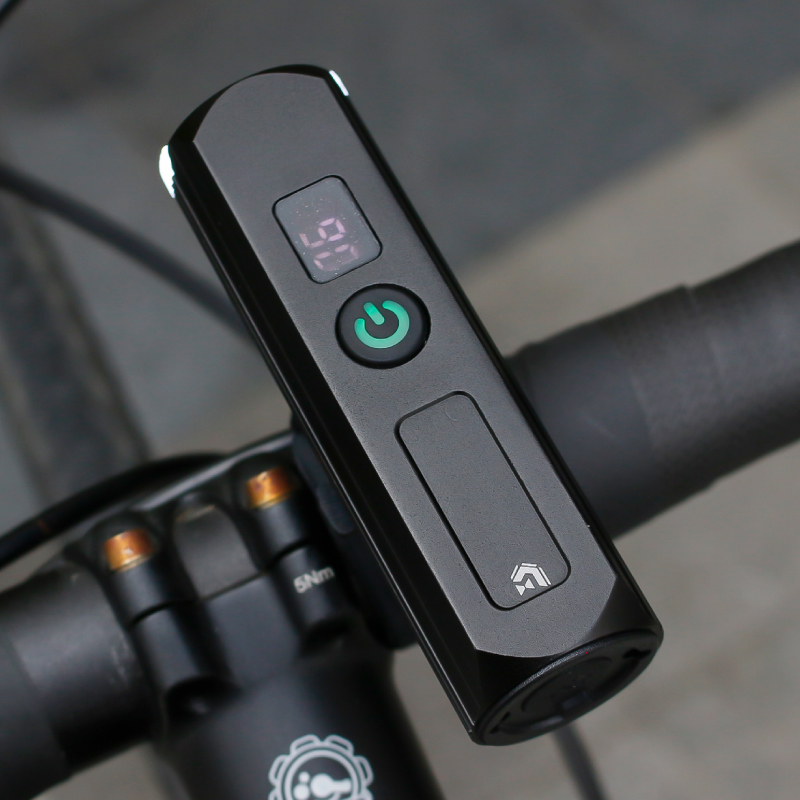 【デジタル残量表示(1%単位)】ライトのバッテリー残量を1%から100%まで数値で表示します。従来のランプ表示や感覚に頼る必要がなく、「あとどれくらい走れるか」を常に把握可能。例えば、通勤前に残量が「45%」と分かれば、安心して往復の走行計画を立てられます。突然のバッテリー切れによる恐怖や、予備のライトを持ち運ぶ煩わしさを解消します。