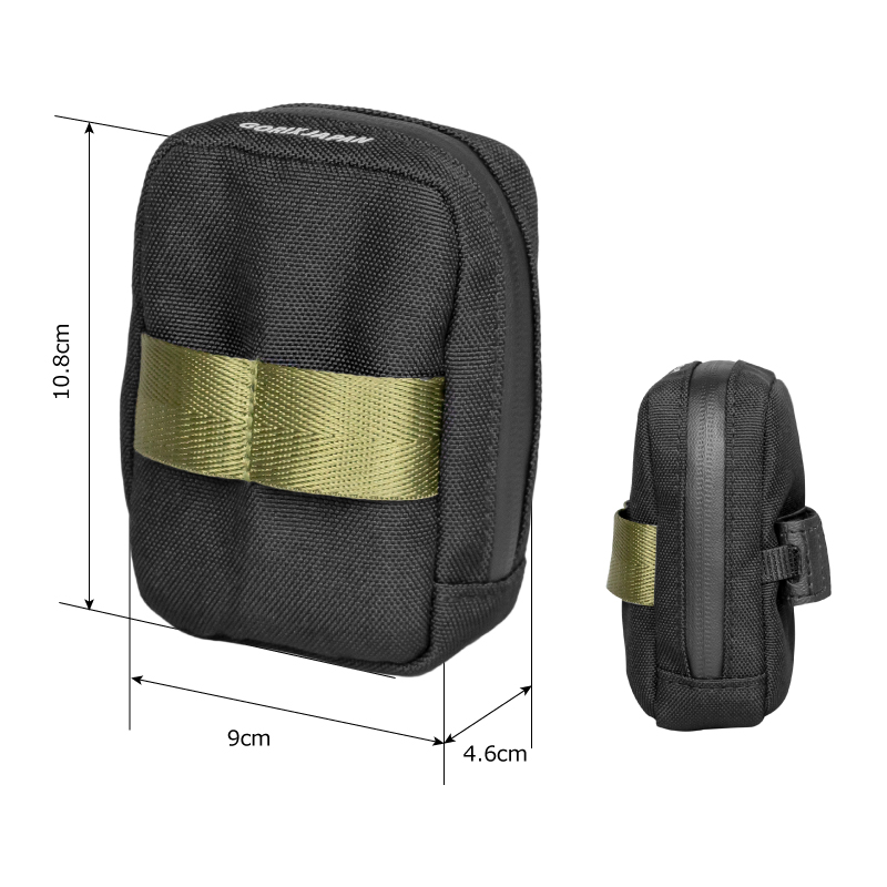 内部にはメッシュポケット2つ、外側にはCO2カートリッジ収納対応の工夫もあり、コンパクトながら高い整理力を実現。撥水性のあるPUコーティング素材で、多少の雨でも中身をしっかり守ります。