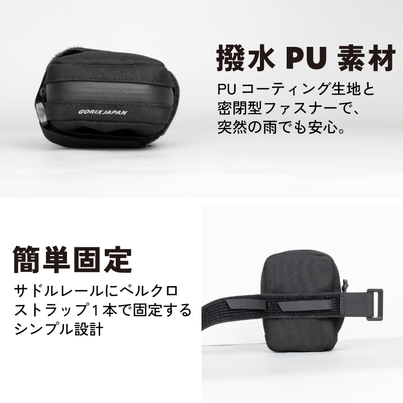 サドルバッグ ロードバイク 小型 自転車 防水 0.3 ミニ 小さい ミニサドルバッグ クロスバイク バッグ 小型サドルバッグ 自転車用バッグ 小物入れ サドルバック ゴリックス gorix ミニマリスト サイクリング 通勤 レース 装備 軽量 超軽量 自転車バッグ コンパクト 撥水 ベルクロ固定 ミニベロ リアバッグ 薄型 収納バッグ シートバッグ