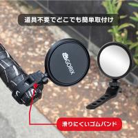 ラバーベルトで固定してからも、ミラー部分は横に360度、斜め下へ20度の角度調整が可能。